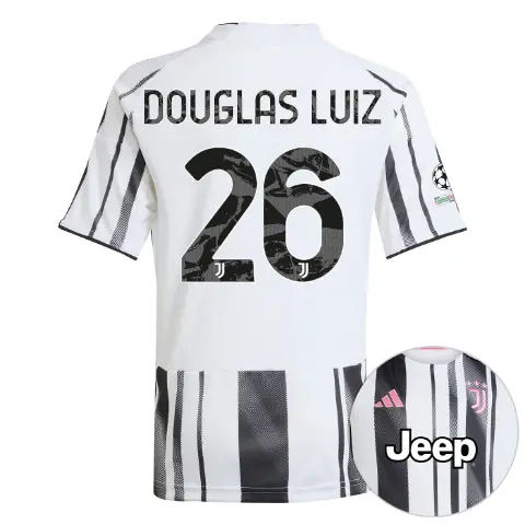 JUVENTUS HOME JERSEY 2025/26 – KIDS – Champions League Pack – 26 – DOUGLAS LUIZ