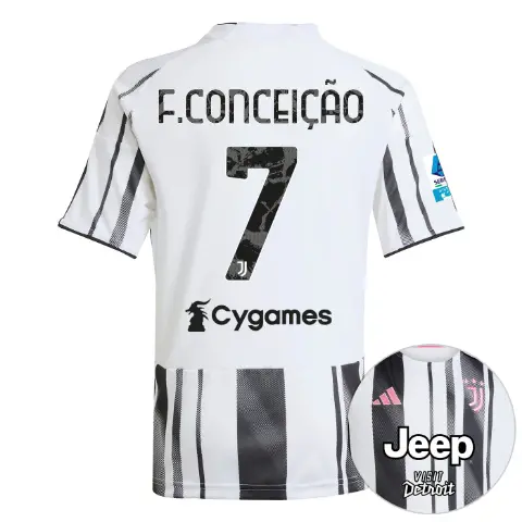JUVENTUS HOME JERSEY 2025/26 – KIDS – Serie A Pack – 25/26 – 7 – F.CONCEIÇÃO