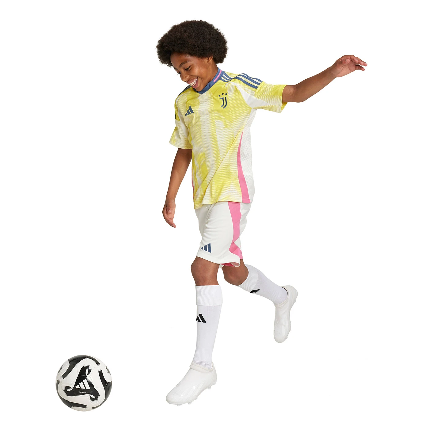 Boldly exploring a brand-new look for the club, this juniors’ Juventus Away jersey shoots for the stars in bright colours. More familiar elements like that embroidered badge and those subtle stripes bring the look back down to Earth but, at its core, this adidas shirt is built for adventure. AEROREADY tech manages moisture to keep football fans feeling at home.