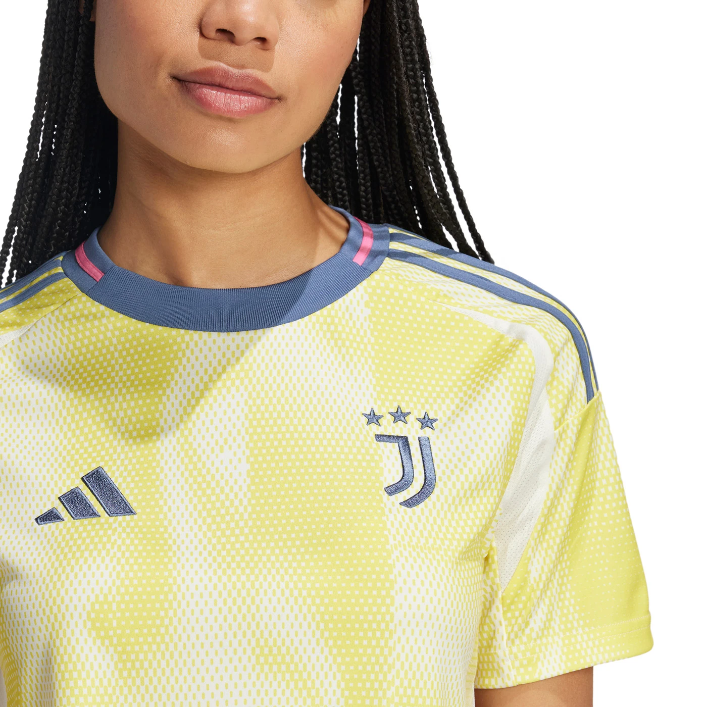 Boldly exploring a brand-new look for the club, this Juventus away jersey shoots for the stars in bright colours. More familiar elements like that embroidered badge and those subtle stripes bring the look back down to Earth but, at its core, this adidas shirt is built for adventure. AEROREADY tech manages moisture to keep football fans feeling at home.