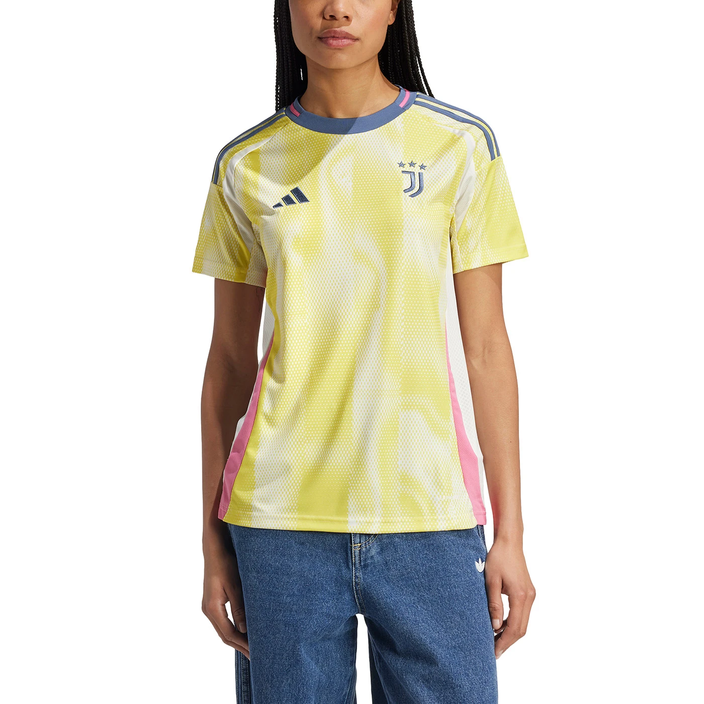 Boldly exploring a brand-new look for the club, this Juventus away jersey shoots for the stars in bright colours. More familiar elements like that embroidered badge and those subtle stripes bring the look back down to Earth but, at its core, this adidas shirt is built for adventure. AEROREADY tech manages moisture to keep football fans feeling at home.